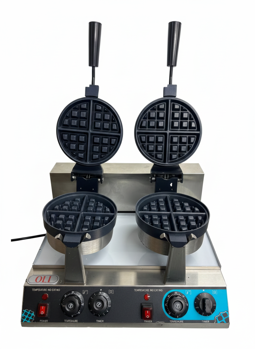 Upgrade your kitchen or food business with this Commercial Double Round Rotating Waffle Maker, engineered for high output, even cooking, and long-lasting commercial use. Perfect for cafés, restaurants, hotels, food trucks, and dessert shops, this machine delivers consistently thick, fluffy Belgian-style waffles every time.